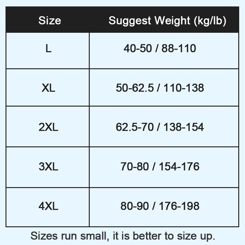Size: L, XL, 2XL, 3XL, 4XL