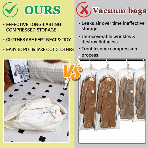 😍Effectively protects your clothes from wrinkles, dust, pet hair, and moisture & Easily compresses up to 40% of space without the need for a vacuum extractor.