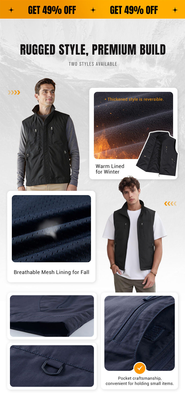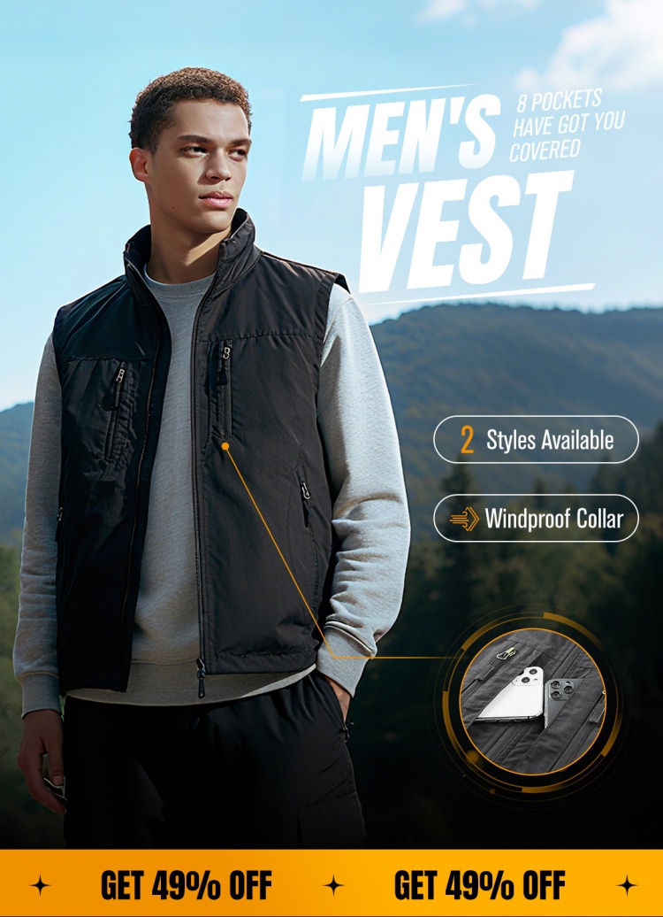 ⏰Limited Time Sale 50% OFF🔥🧥Men's Oversized Sleeveless Vest Jacket With Pockets